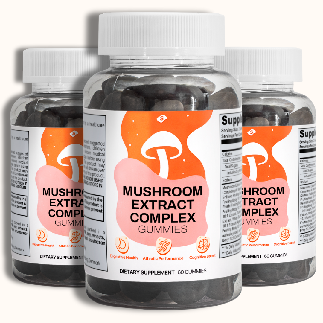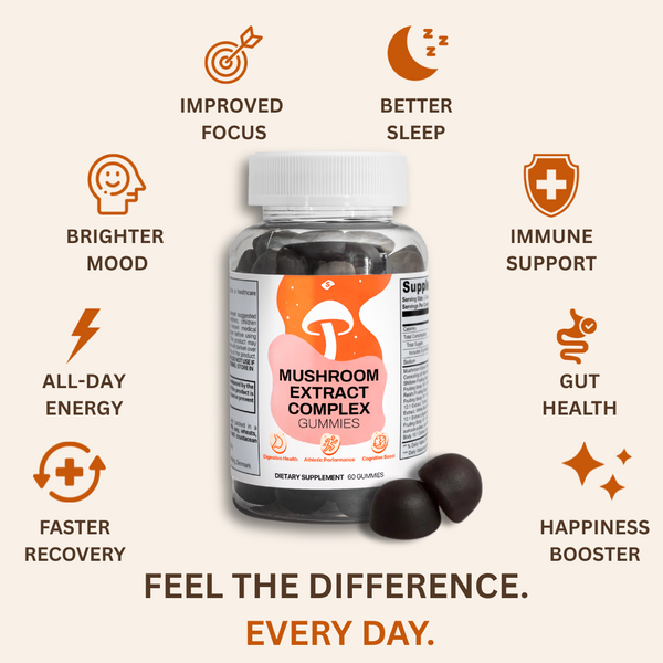 Our Vitality Mushroom Complex contains 100% fruiting body extracts from 10 premium mushroom species, not the mycelium-on-grain fillers used by many competitors. Fruiting bodies contain significantly higher concentrations of bioactive compounds like beta-glucans. Plus, our delicious gummy format ensures you'll actually take them consistently, unlike hard-to-swallow pills or bad-tasting powders that end up forgotten in your cabinet.